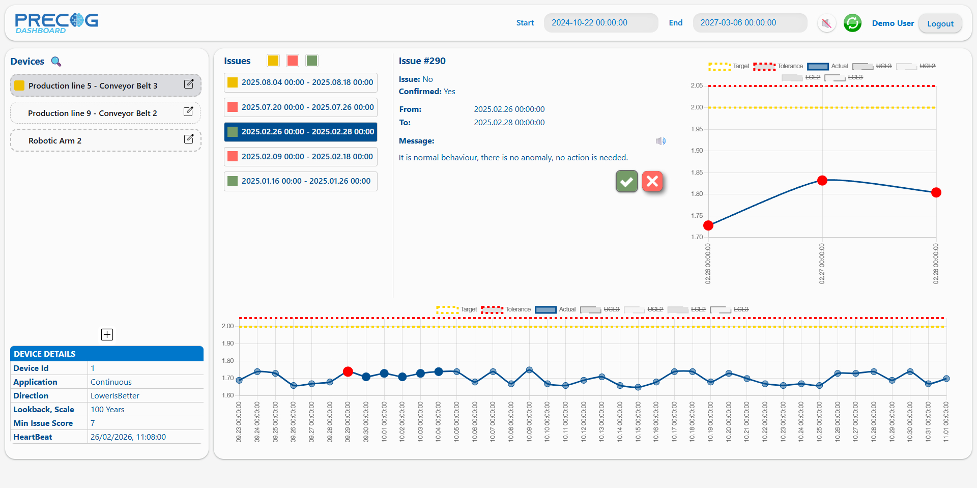 In this example, you can see how Precog raises an alarm 14 days before a fault occurs in an electric motor.